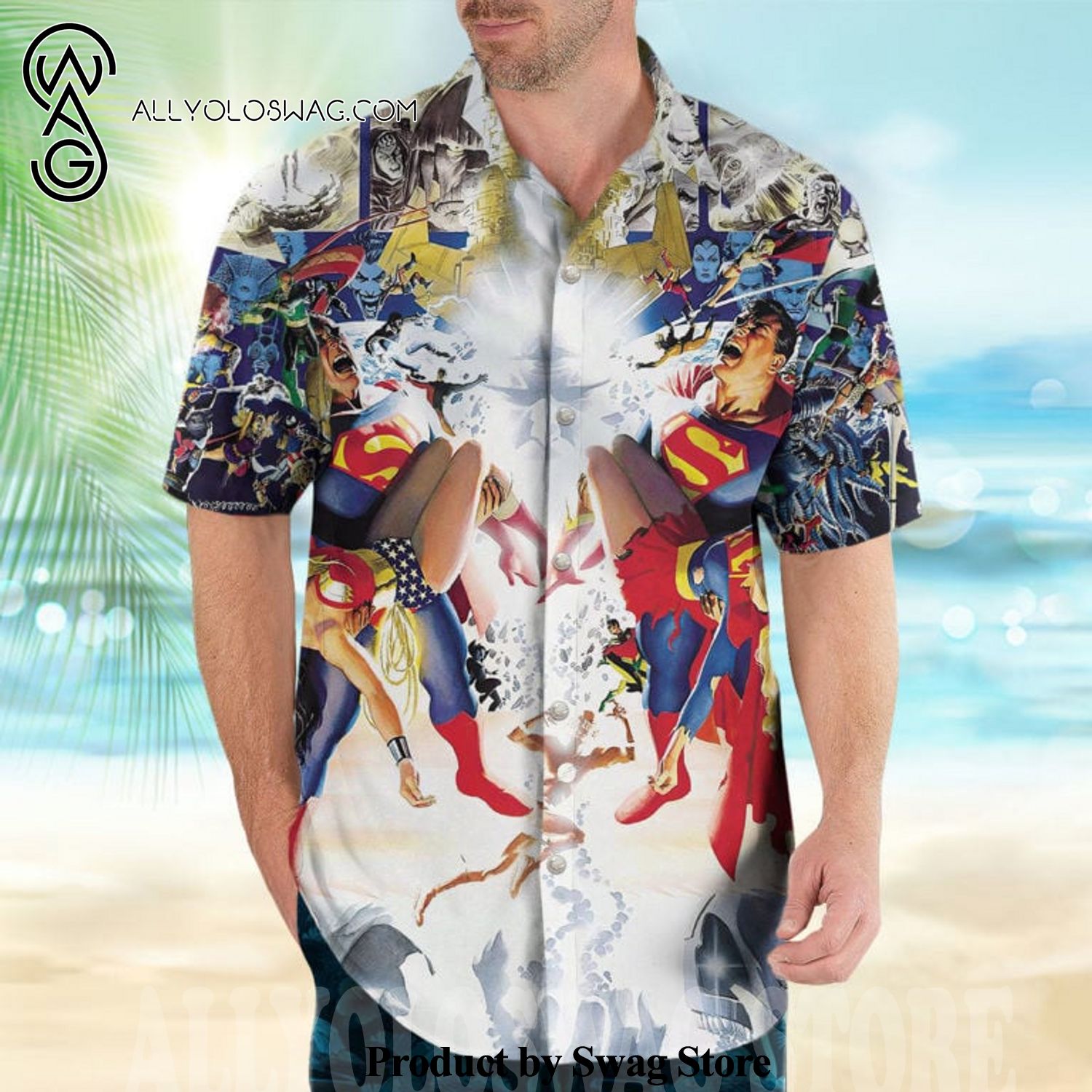 [Top-selling] Crisis on Infinite Earths DC Superman And Wonder Woman All Over Print Combo Hawaiian Shirt And Beach Shorts
