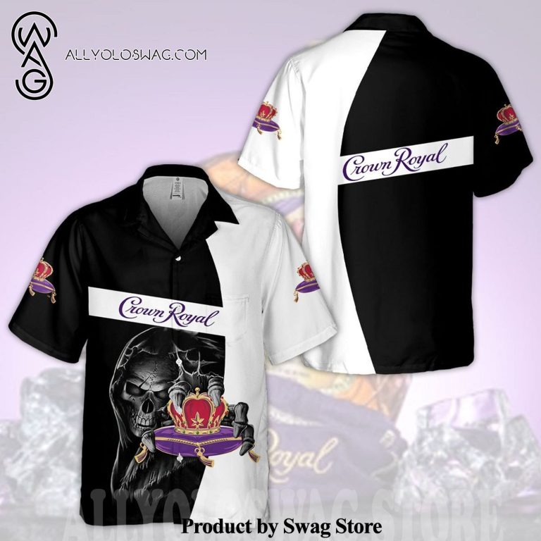 Hawaiian Shirt [Top-selling] Crown Royal Death All Over Print Aloha Summer Beach Hawaiian Shirt – Black White