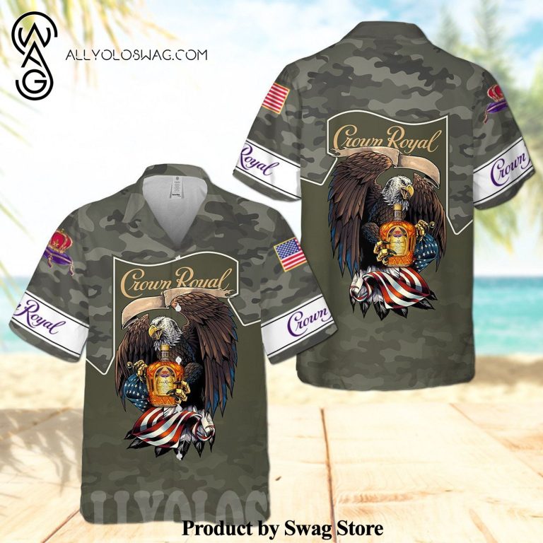 Hawaiian Shirt [Top-selling] Crown Royal Eagle USA Flag All Over Print Camo Aloha Summer Beach Hawaiian Shirt