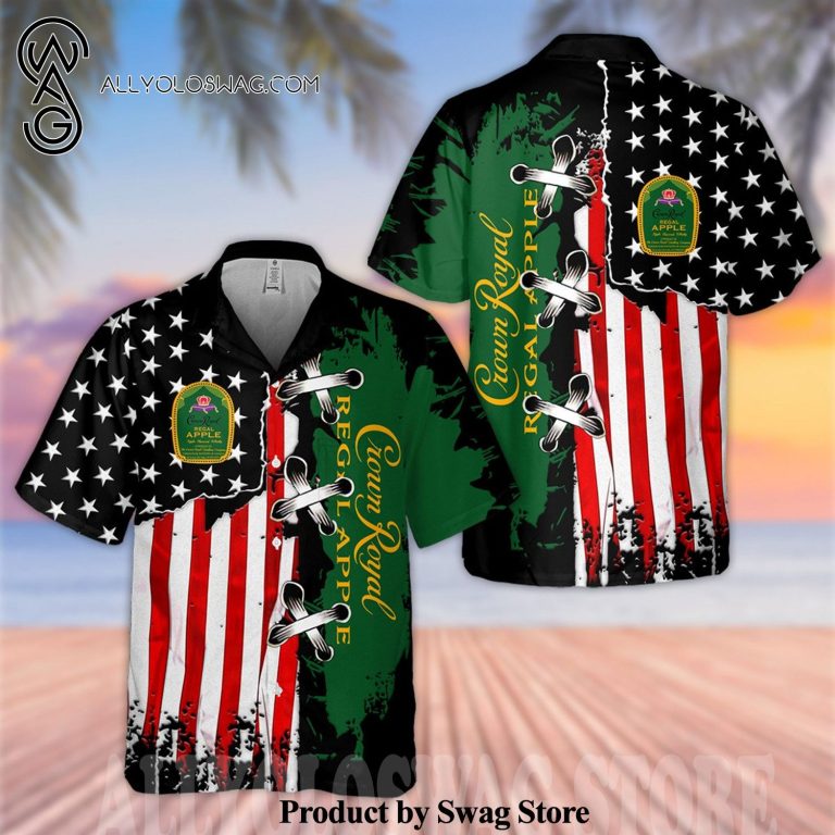 Some details about our product [Top-selling] Crown Royal Regal Apple USA Flag All Over Print Aloha Summer Beach Hawaiian Shirt – Black Green
