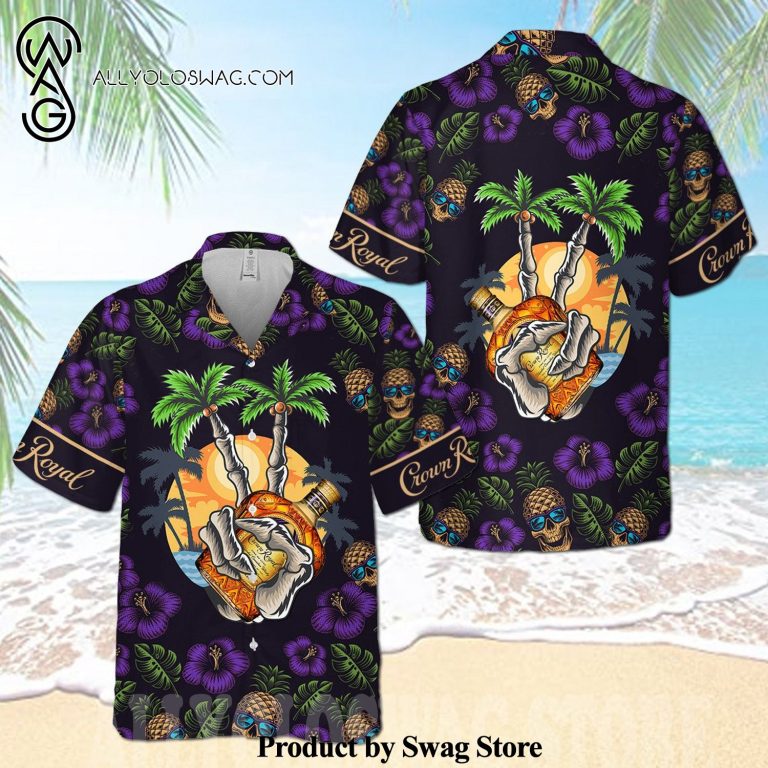 Some details about our product [Top-selling] Crown Royal Skeleton All Over Print Flowery Aloha Summer Beach Hawaiian Shirt – Black