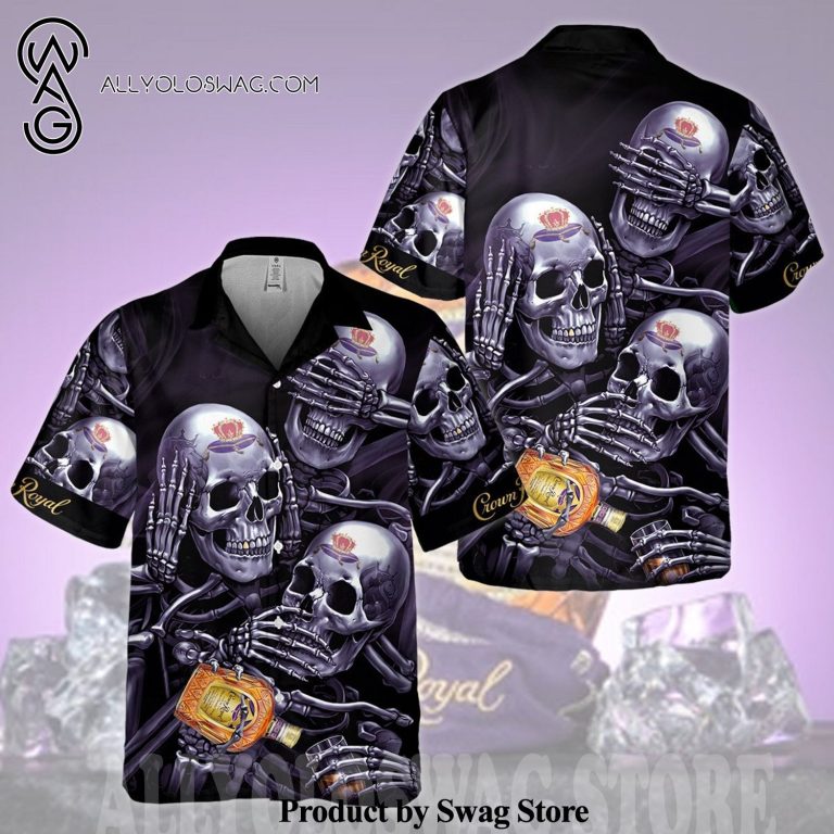 Hawaiian Shirt [Top-selling] Crown Royal Skull Emotions All Over Print Aloha Summer Beach Hawaiian Shirt – Black