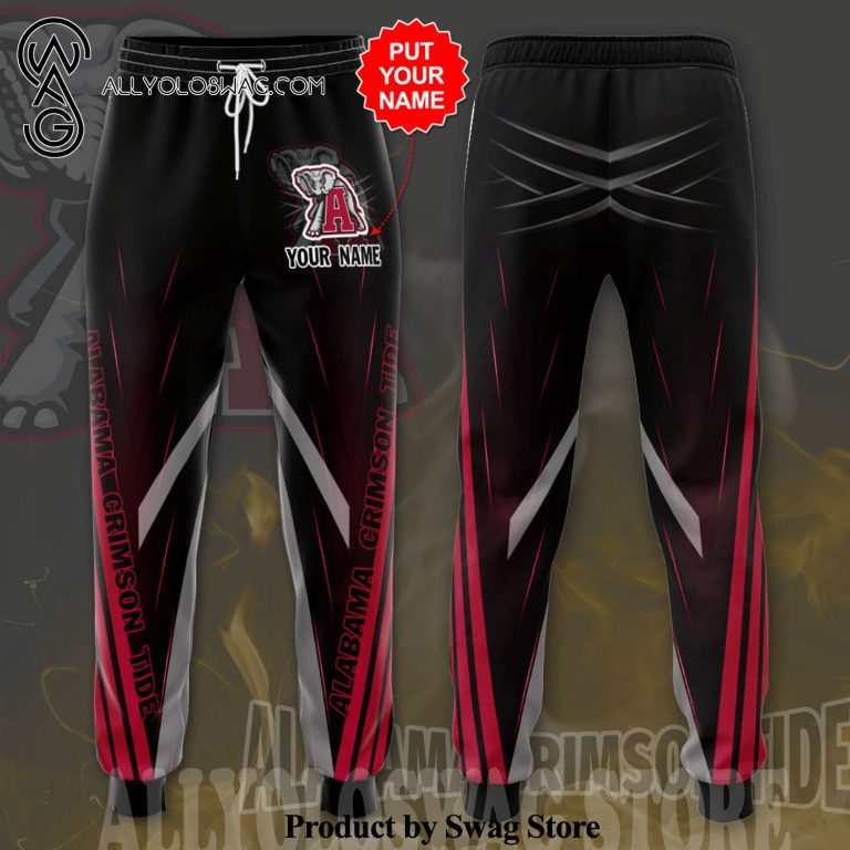 NOTE: [Top-selling] Custom Alabama Crimson Tide Full Printing Stripes Casual Unisex Sweatpants – Black