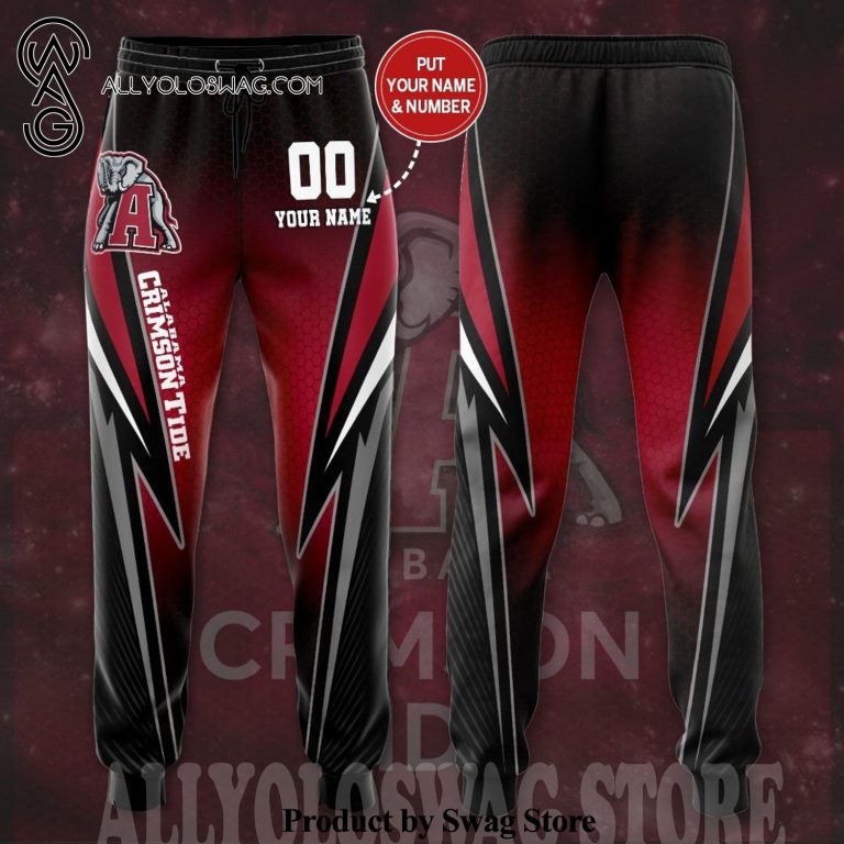 [Top-selling] Custom Alabama Crimson Tide Lightning Bolt Full Printing Casual Unisex Sweatpants – Black Red