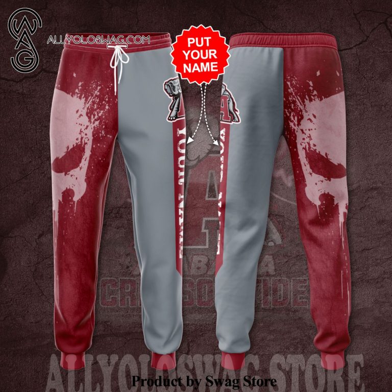 NOTE: [Top-selling] Custom Alabama Crimson Tide Skull Pattern Full Printing Casual Unisex Sweatpants – Light Gray Red