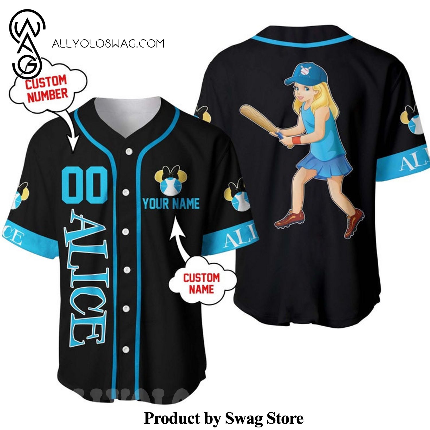 Some details about our product [Top-selling] Custom Alice In Wonderland Disney All Over Printed Unisex Baseball Jersey – Black