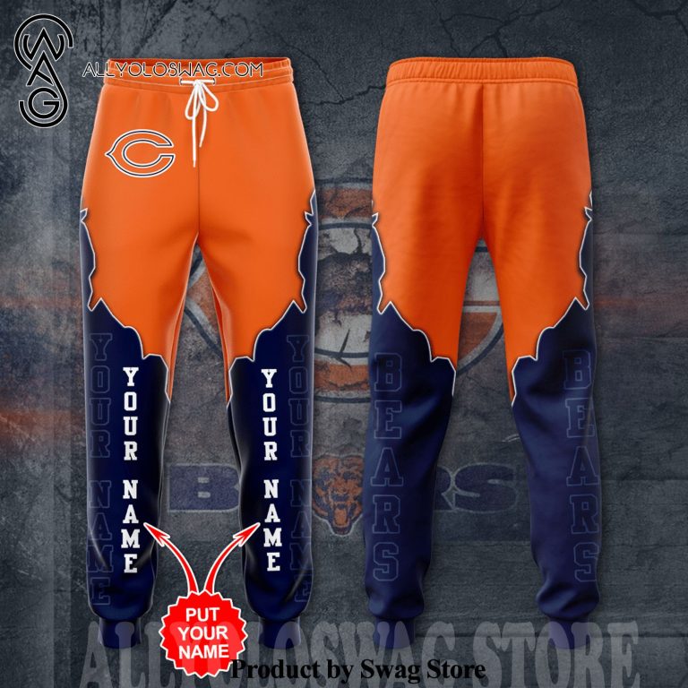 NOTE: [Top-selling] Custom Chicago Bears Full Printing Casual Unisex Sweatpants – Navy Orange