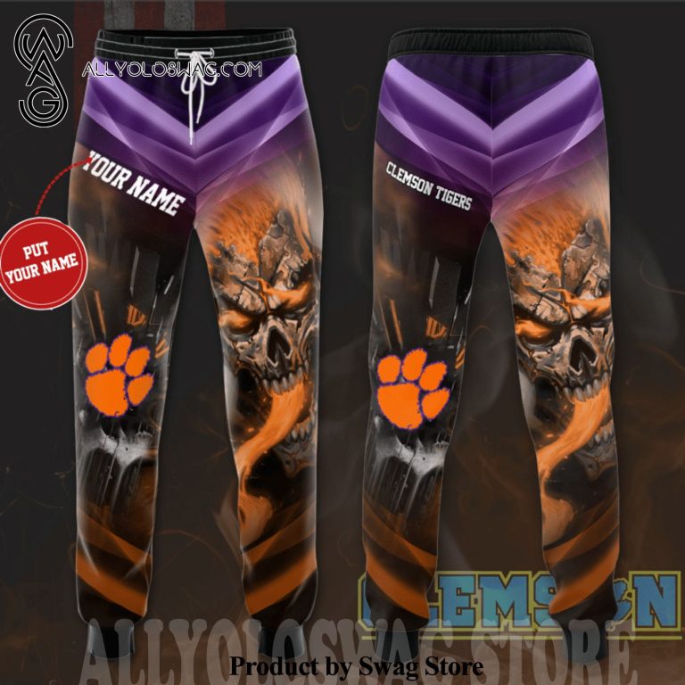 [Top-selling] Custom Clemson Tigers Smoky Skull Full Printing Casual Unisex Sweatpants
