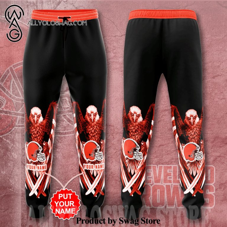 NOTE: [Top-selling] Custom Cleveland Browns Eagle Full Printing Casual Unisex Sweatpants – Black Orange