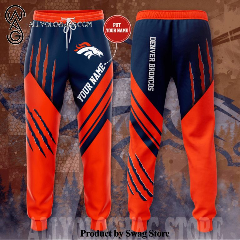 Some details about our product [Top-selling] Custom Denver Broncos Claws Full Printing Casual Unisex Sweatpants – Navy Orange