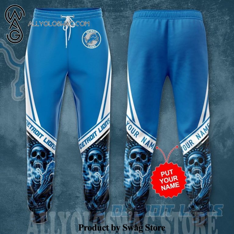 NOTE: [Top-selling] Custom Detroit Lions Skeleton Full Printing Casual Unisex Sweatpants – Blue