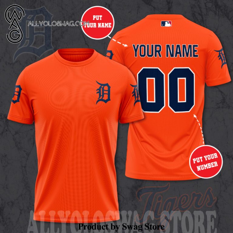 [Top-selling] Custom Detroit Tigers Full Printing Unisex Casual T-Shirt – Orange