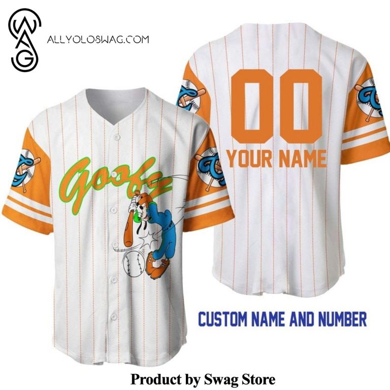 9 Effortlessly Cool Baseball Jersey Outfit Ideas [Top-selling] Custom Goofy Dog All Over Print Pinstripe Baseball Jersey – White
