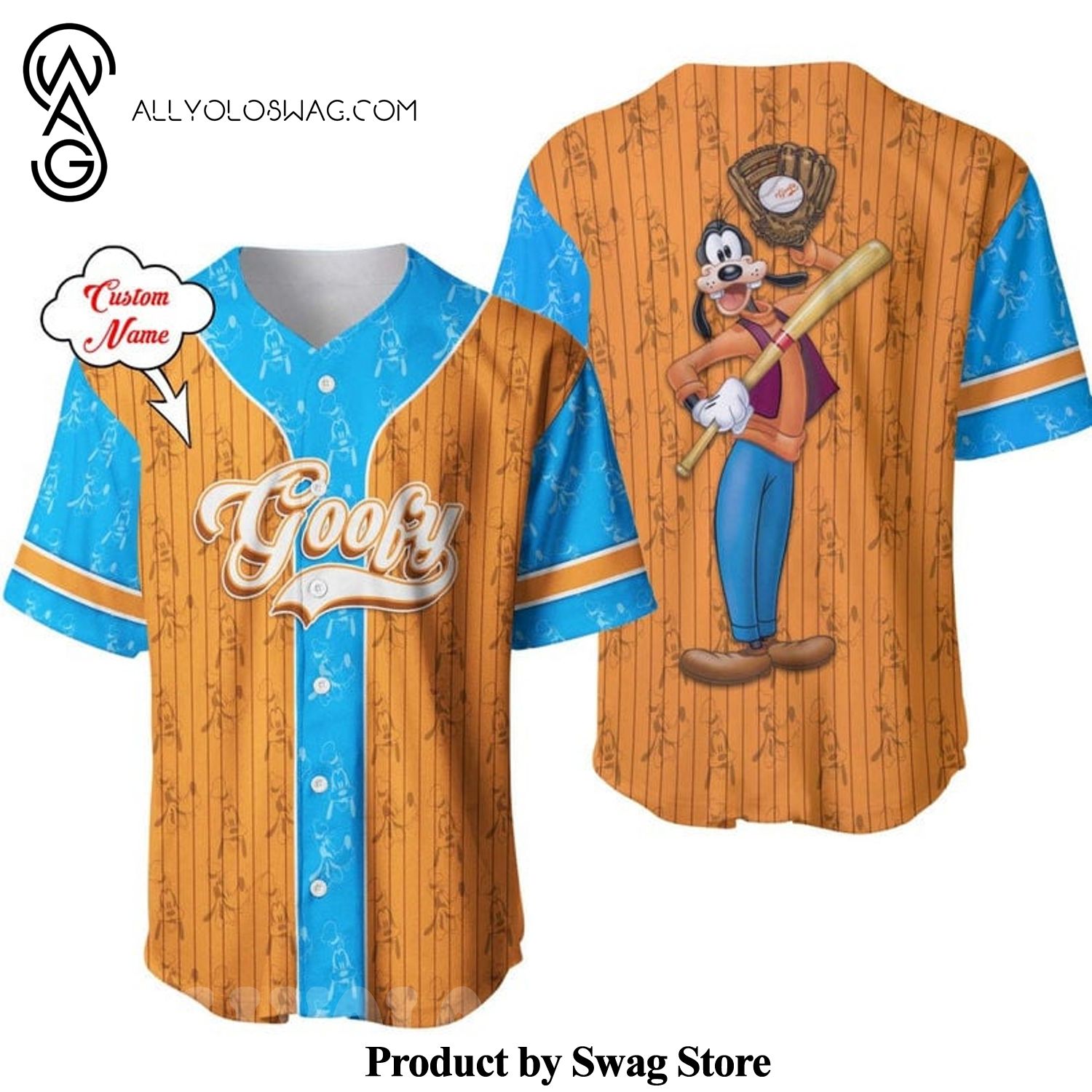 9 Effortlessly Cool Baseball Jersey Outfit Ideas [Top-selling] Custom Goofy Dog Pattern Disney Full Printed Pinstripe Baseball Jersey – Orange