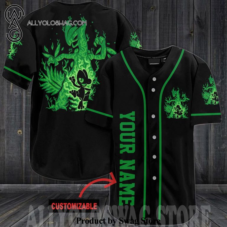 9 Effortlessly Cool Baseball Jersey Outfit Ideas [Top-selling] Custom Gorgeous Green Pokemon All Over Printed Unisex Baseball Jersey – Black