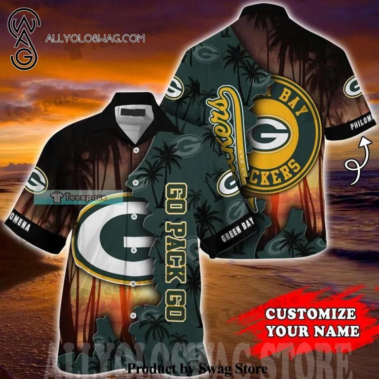 [Top-selling] Custom Green Bay Packers Sunset Beach Summer Set Hawaiian Shirt was hand-tailored in the early days of fashion. This might happen in the comfort of one’s own home or at a custom tailor’s business. These stores immediately sprang up all across the islands, especially in plantation towns and Honolulu. Newly accessible fabrics from throughout the world were sold at dry goods stores, including printed silk from Japan, raw silk, batik, and rayon from the United States mainland, and cotton cloth for kimonos and yukatas.Hawaiian history had long been shaped by Asian immigrants, and apparel designs reflected this. Short- and long-sleeved shirts, as well as women’s skirts, were created using pre-printed textiles from China and Japan and were based on Asian clothing styles. These bright blouses and dresses were the forerunners of today’s Aloha attire. On the islands, we say “ono” to describe something that is pleasantly cool.