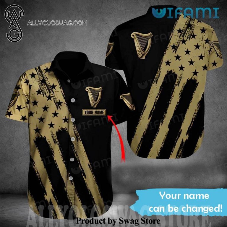 [Top-selling] Custom Guinness USA Flag Beer Guinness Gift Hawaiian Shirt was hand-tailored in the early days of fashion. This might happen in the comfort of one’s own home or at a custom tailor’s business. These stores immediately sprang up all across the islands, especially in plantation towns and Honolulu. Newly accessible fabrics from throughout the world were sold at dry goods stores, including printed silk from Japan, raw silk, batik, and rayon from the United States mainland, and cotton cloth for kimonos and yukatas.Hawaiian history had long been shaped by Asian immigrants, and apparel designs reflected this. Short- and long-sleeved shirts, as well as women’s skirts, were created using pre-printed textiles from China and Japan and were based on Asian clothing styles. These bright blouses and dresses were the forerunners of today’s Aloha attire. On the islands, we say “ono” to describe something that is pleasantly cool.