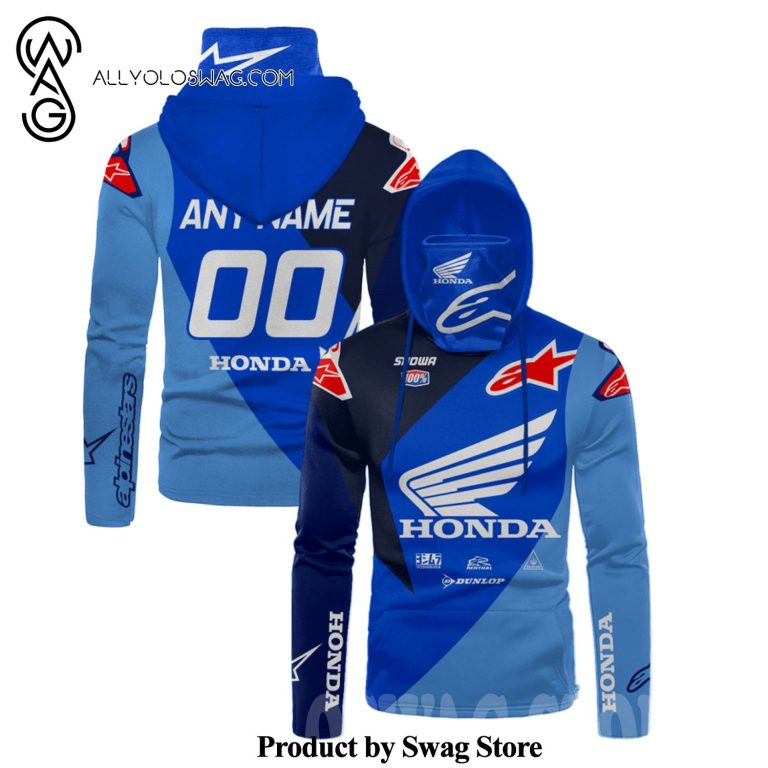NOTE: [Top-selling] Custom Honda Motogp Racing Alpinestars Showa Dunlop Full Printing Mask Hoodie – Blue