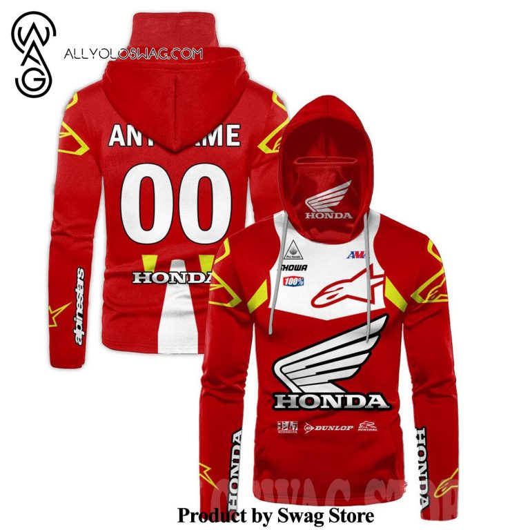 NOTE: [Top-selling] Custom Honda Motogp Racing Showa Ama Dunlop Alpinestars Full Printing Mask Hoodie – Red