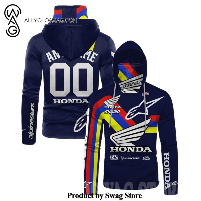NOTE: [Top-selling] Custom Honda Motogp Racing Showa Dunlop Full Printing Mask Hoodie – Navy