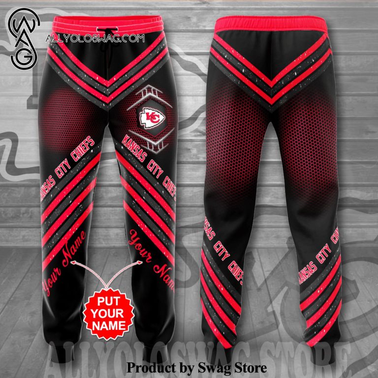 NOTE: [Top-selling] Custom Kansas City Chiefs Full Printing Glittering Stripes Casual Unisex Sweatpants – Red Black
