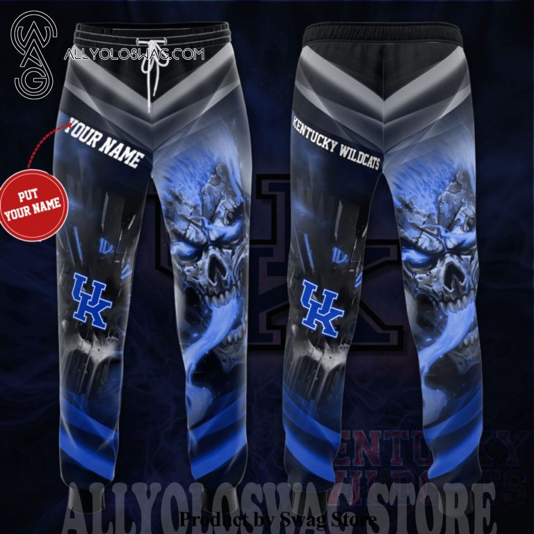 NOTE: [Top-selling] Custom Kentucky Wildcats Smoku Blue Skull Full Printing Casual Unisex Sweatpants – Black