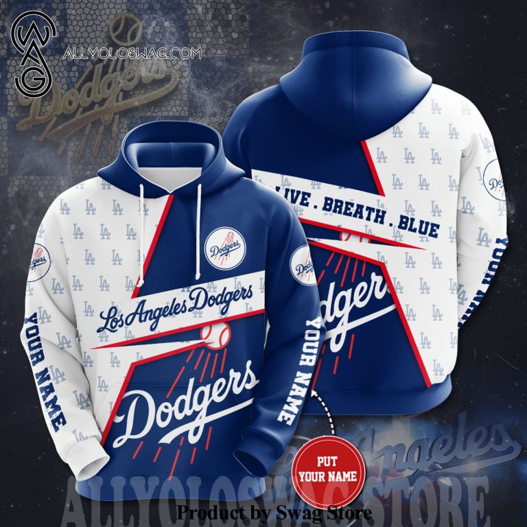 [Top-selling] Custom Los Angeles Dodgers Baseball Team Live Breath Blue Full Printing Hoodie – Blue