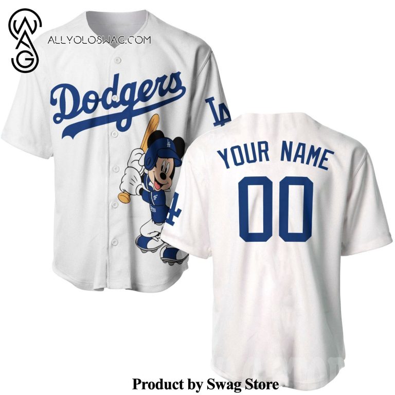 9 Effortlessly Cool Baseball Jersey Outfit Ideas [Top-selling] Custom Los Angeles Dodgers Mickey Mouse All Over Print Unisex Baseball Jersey – White