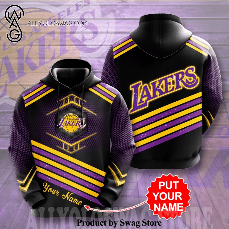 [Top-selling] Custom Los Angeles Lakers Full Printing Glittering Casual Unisex Hoodie – Black