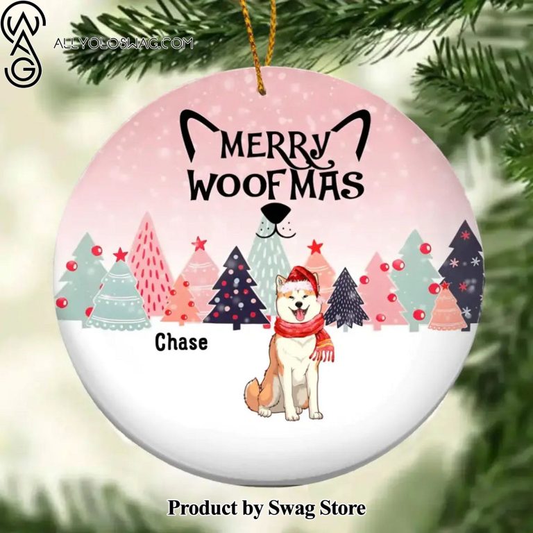[Top-selling] Custom Merry Woofmas Pinktone Circle Ceramic – Custom Dog Lovers Decorative Christmas Ornament Description Information: