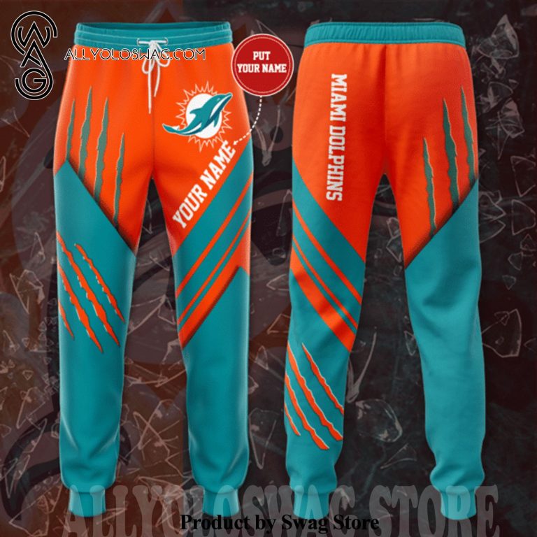 NOTE: [Top-selling] Custom Miami Dolphins Claws Full Printing Casual Unisex Sweatpants – Orange Turquoise