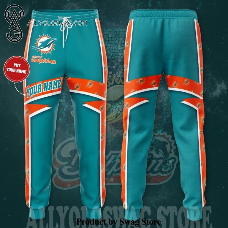 Some details about our product [Top-selling] Custom Miami Dolphins Full Printing Casual Unisex Sweatpants – Turquoise Orange