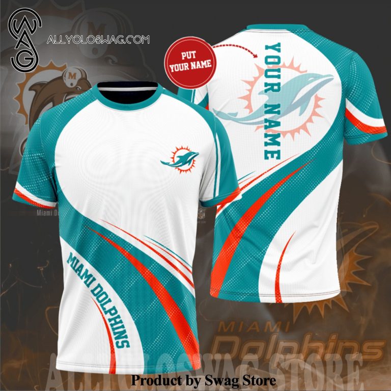 [Top-selling] Custom Miami Dolphins Logo Full Printing Casual Unisex T-Shirt – White Turquoise