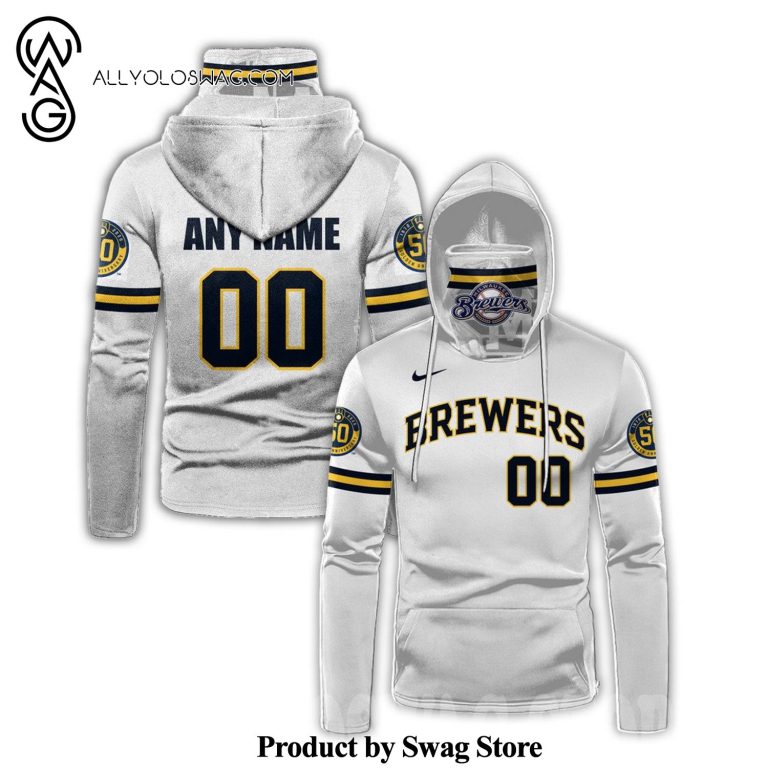 [Top-selling] Custom Milwaukee Brewers Full Printing 3D Mask Hoodie – White