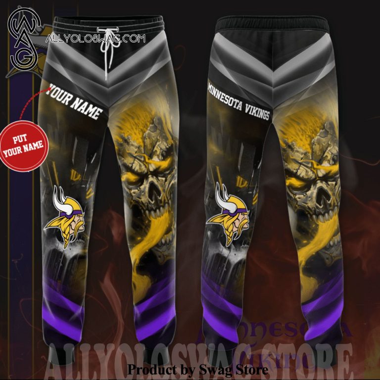 [Top-selling] Custom Minnesota Vikings Smoky Yellow Skull Full Printing Casual Unisex Sweatpants