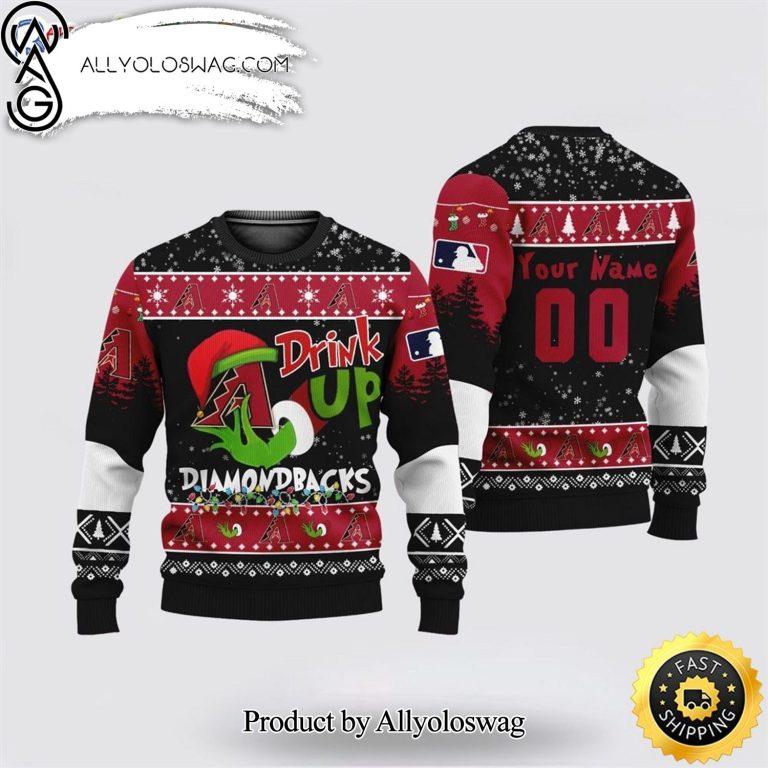NOTE: [Top-selling] Custom MLB Arizona Diamondbacks Grinch Drink Up Christmas Gift For Football Fans Ugly Christmas Holiday Sweater