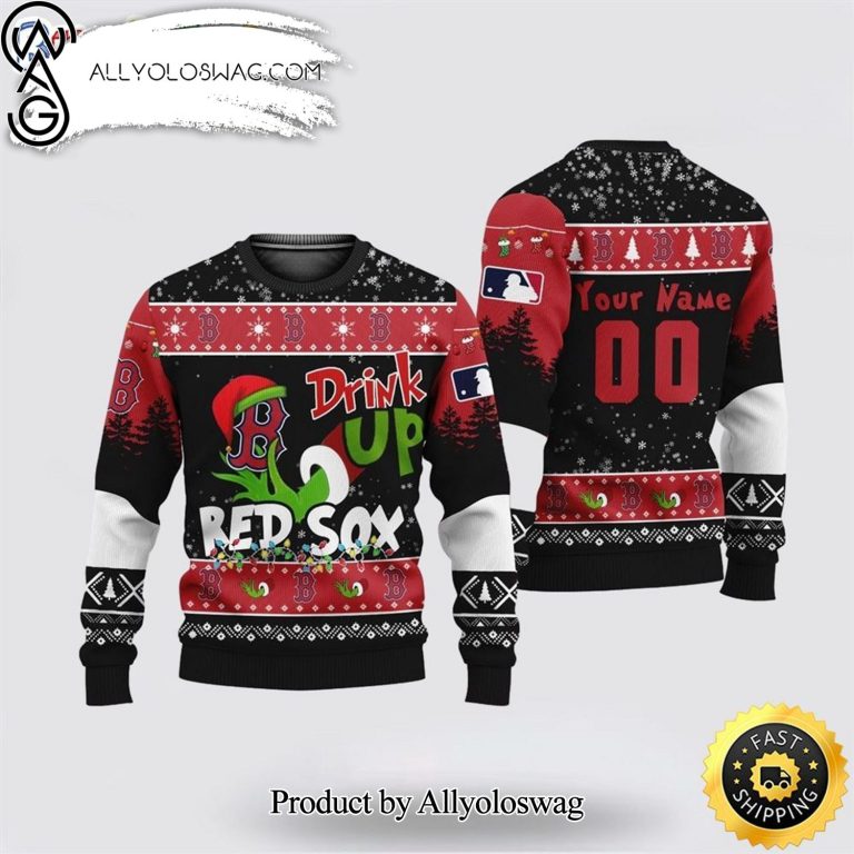 NOTE: [Top-selling] Custom MLB Boston Red Sox Grinch Drink Up Christmas Gift For Football Fans Knitting Pattern Ugly Christmas Sweater