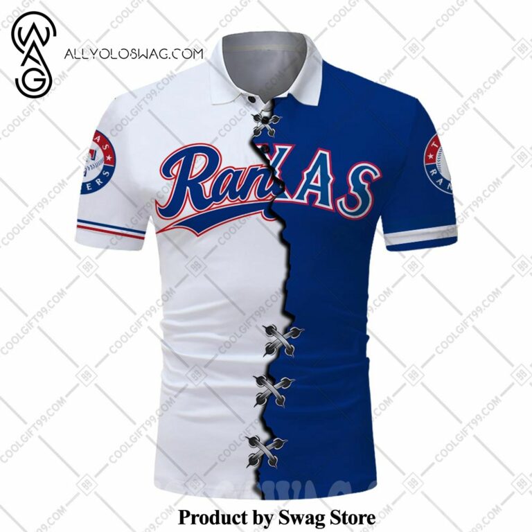 The origins of the [Top-selling] Custom MLB Texas Rangers Mix jersey Style Polo Shirt can be traced back to the early 20th century when it was primarily worn by polo players. Its design was inspired by the need for a practical yet stylish garment that allowed for ease of movement during the fast-paced game. The polo shirt features a soft collar, a buttoned placket at the neck, and a relaxed fit that allows for comfortable and unrestricted movement.