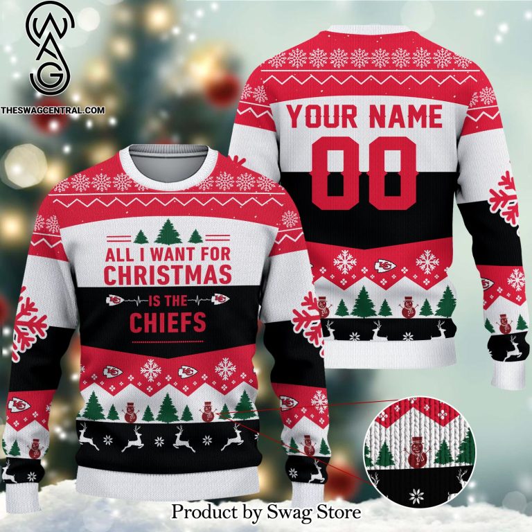 NOTE: [Top-selling] Custom Name and Number All I Want For Christmas Is The Kansas City Chiefs Knitting Pattern 3D Print Ugly Sweater