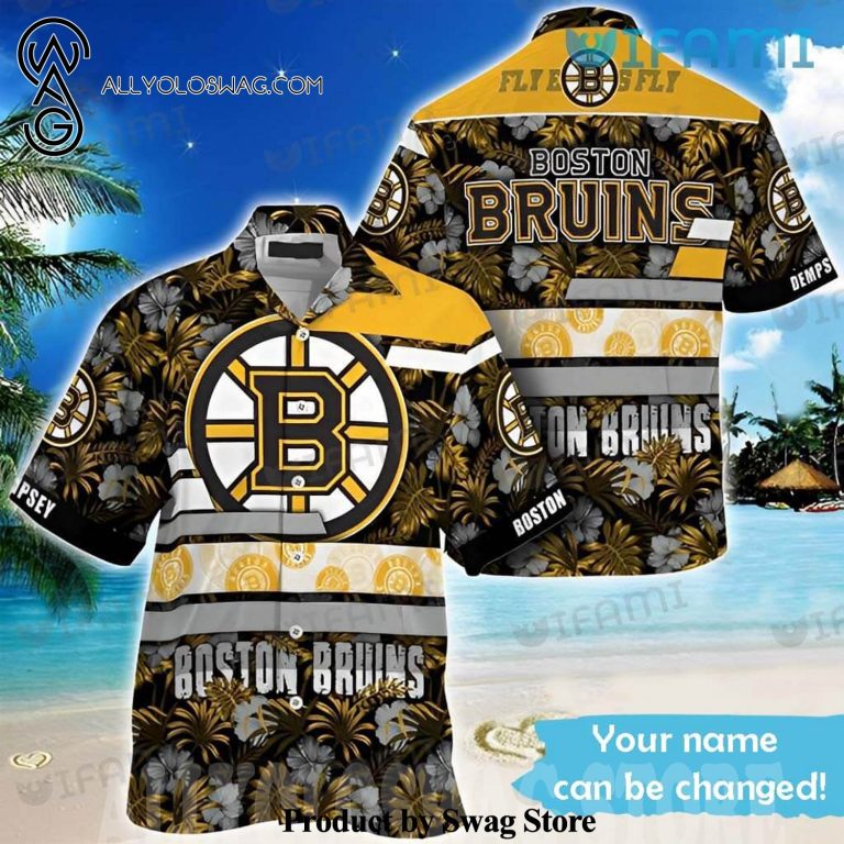 [Top-selling] Custom Name Bruins Big Logo Tropical Leaf Boston Bruins Gift Hawaiian Shirt was hand-tailored in the early days of fashion. This might happen in the comfort of one’s own home or at a custom tailor’s business. These stores immediately sprang up all across the islands, especially in plantation towns and Honolulu. Newly accessible fabrics from throughout the world were sold at dry goods stores, including printed silk from Japan, raw silk, batik, and rayon from the United States mainland, and cotton cloth for kimonos and yukatas.Hawaiian history had long been shaped by Asian immigrants, and apparel designs reflected this. Short- and long-sleeved shirts, as well as women’s skirts, were created using pre-printed textiles from China and Japan and were based on Asian clothing styles. These bright blouses and dresses were the forerunners of today’s Aloha attire. On the islands, we say “ono” to describe something that is pleasantly cool.