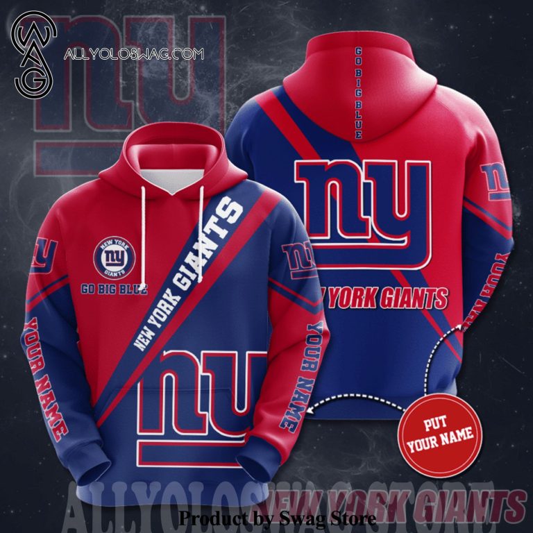 [Top-selling] Custom New York Giants Go Big Blue Full Printing Casual Unisex Hoodie – Neon Blue Red
