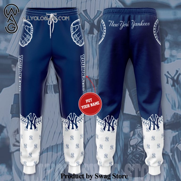 NOTE: [Top-selling] Custom New York Yankees Baseball Glove Full Printing Casual Unisex Sweatpants – White Navy