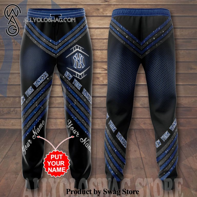 [Top-selling] Custom New York Yankees Full Printing Glittering Stripes Casual Unisex Sweatpants – Black