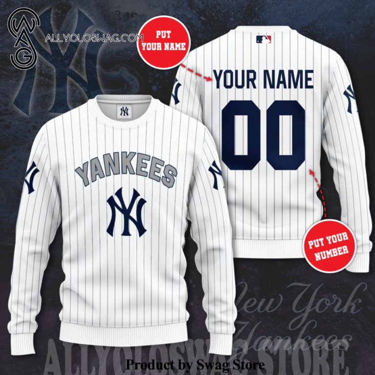 NOTE: [Top-selling] Custom New York Yankees Full Printing Pinstripe Casual Unisex Sweatshirt – White
