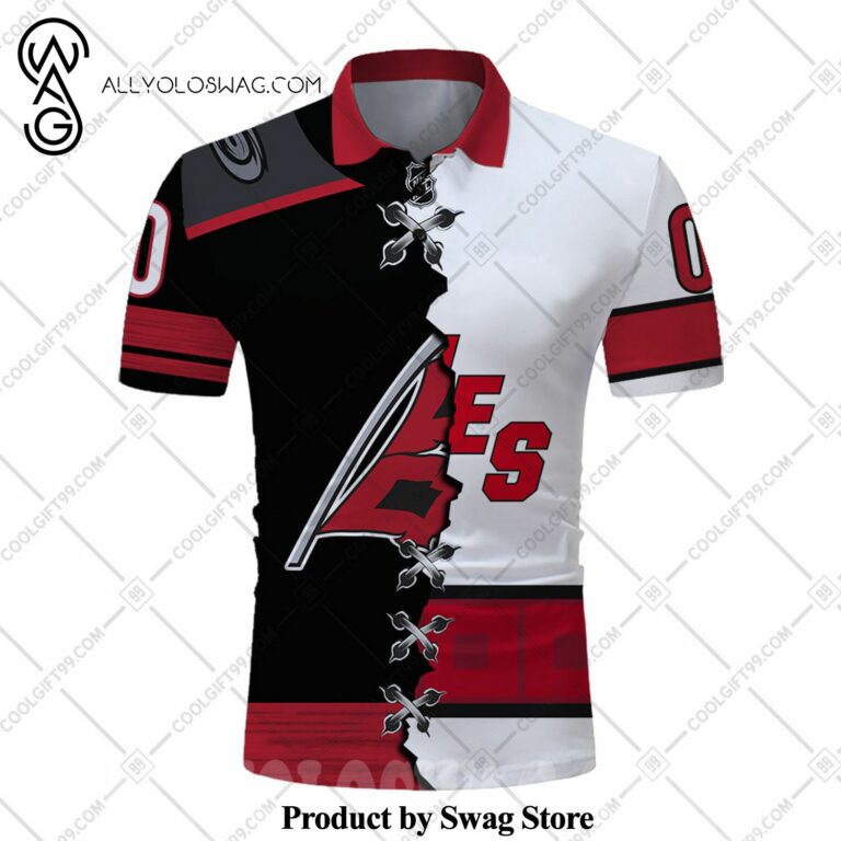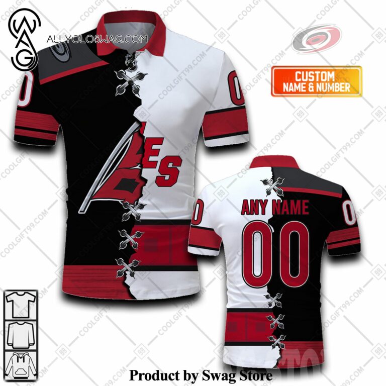 The origins of the [Top-selling] Custom NHL Carolina Hurricanes Mix Jersey Style Polo Shirt can be traced back to the early 20th century when it was primarily worn by polo players. Its design was inspired by the need for a practical yet stylish garment that allowed for ease of movement during the fast-paced game. The polo shirt features a soft collar, a buttoned placket at the neck, and a relaxed fit that allows for comfortable and unrestricted movement.
