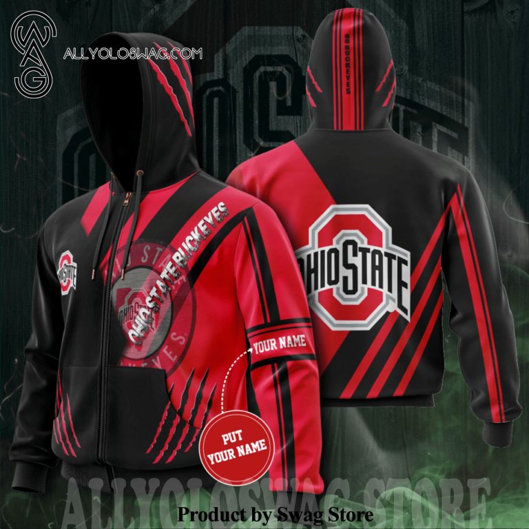 [Top-selling] Custom Ohio State Buckeyes Full Printing Zip-Up Hoodie – Red