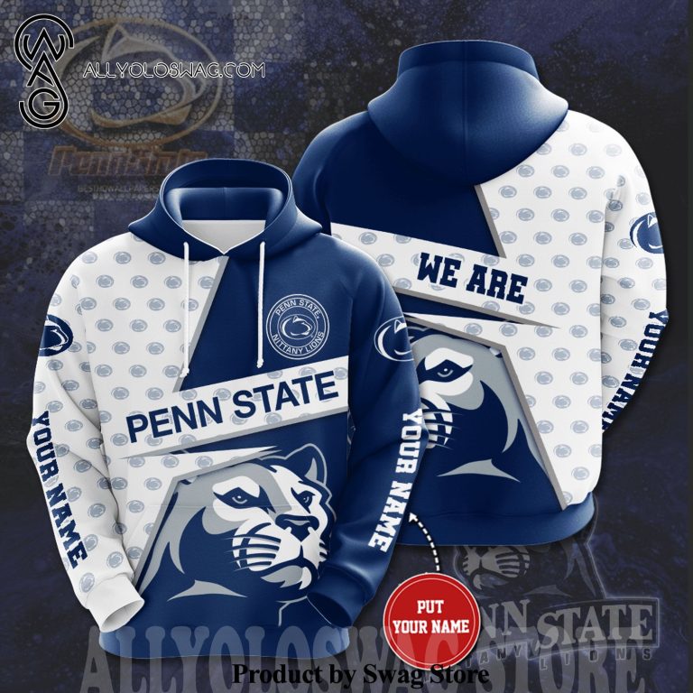 Product description information [Top-selling] Custom Penn State Nittany Lions Logo Full Printing Casual Unisex Hoodie – Navy White