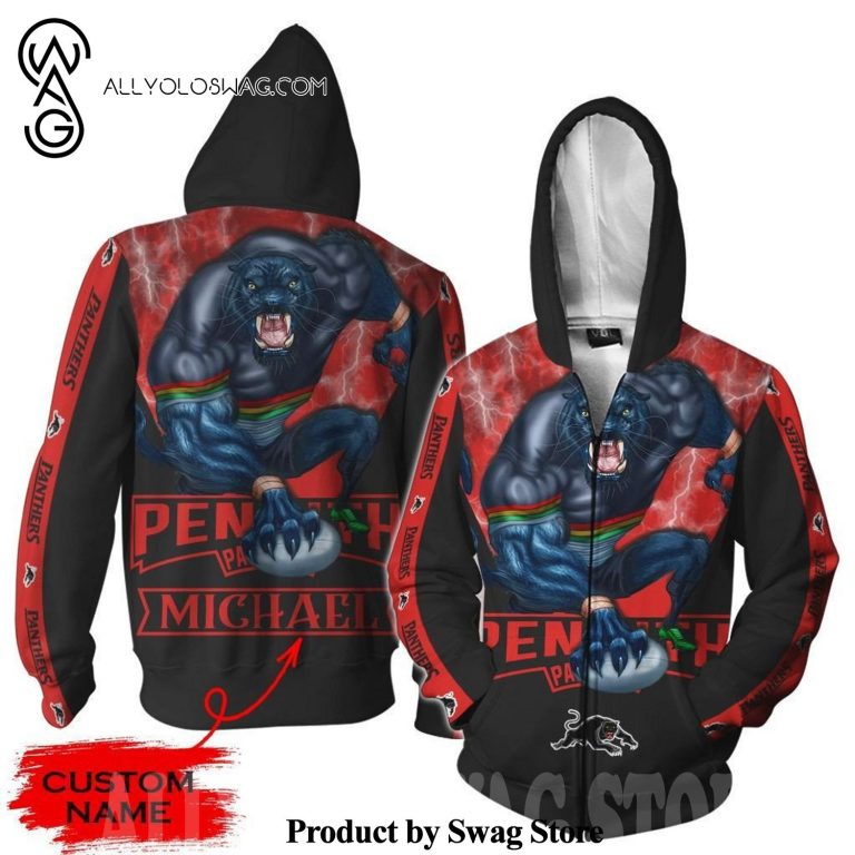 Product description information [Top-selling] Custom Penrith Panthers NRL Mascot Full Printing Zip Hoodie – Black Red