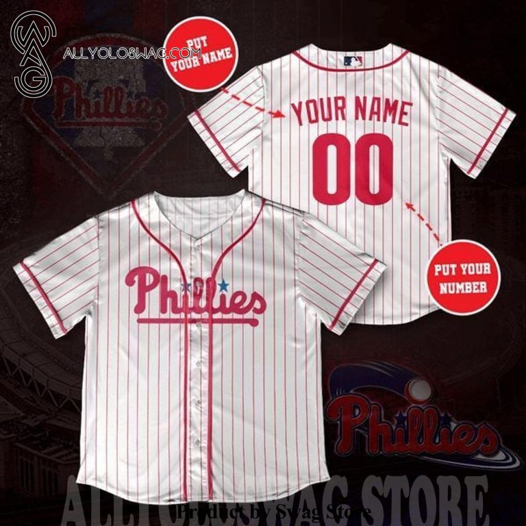 9 Effortlessly Cool Baseball Jersey Outfit Ideas [Top-selling] Custom Philadelphia Phillies Full Printed Pinstripe Unisex Baseball Jersey – White