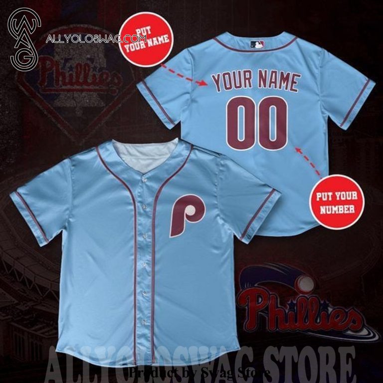 9 Effortlessly Cool Baseball Jersey Outfit Ideas [Top-selling] Custom Philadelphia Phillies Full Printed Unisex Baseball Jersey – Blue